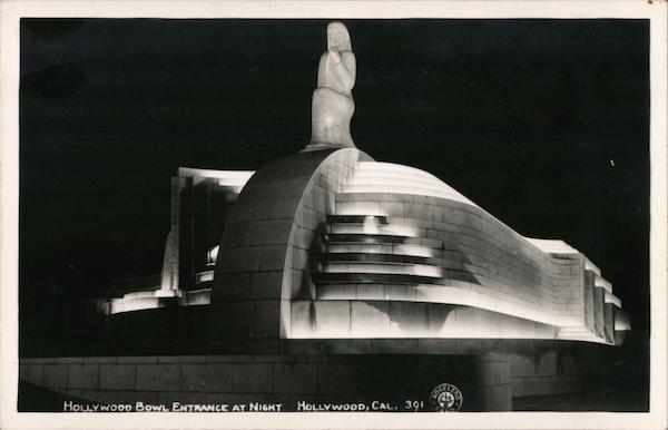 HOLLYWOO0 BowL ENTRANCE AT NIGHT HOLLYWOOD, CAL. 391 CoPp EnO