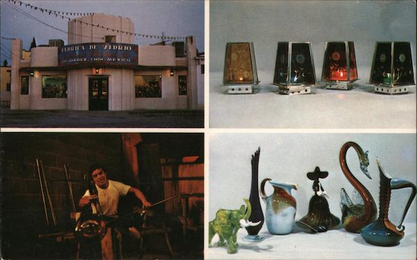 When in El Paso or Juarez visit Ciristales de Chihuahua Glass Factory, 1500 E. 16th de Septiembre Ave, Cd. Juarezx, Chih., Mexico. Phone Juarez 2-3003. You are invited to watch the "Old World Art" of multi0shaoe and color glass items hand blown and crafted while you are there. Craftsmen at work Monday through Sunday, 8:00 A.M. - 8:00 P.M. |
