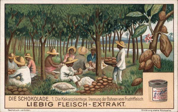 DIE SCHOKOLADE. 1. Die Kakaoplantage. Trennung der Bohnen vom Fruchtfleisch.