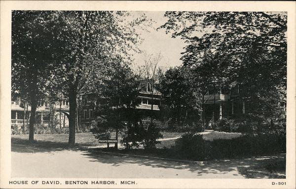 Front: PRIVATE CRU*OS HOUSE OF DAVID, BENTON HARBOR, MICH. D-501 Back: VIEW CLEAR MFD. BY WAYNE PAPER BOX & PRTG. CORP., FORT WAYNE, IND.