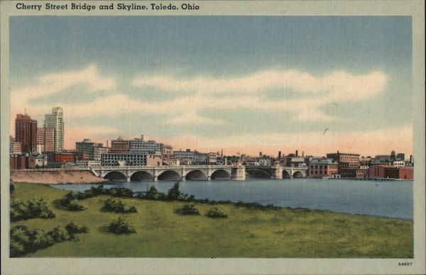 Front: Cherry Street Bridge and Skyline, Toledo, Ohio 64897 Back: MADE IN U. S. A "TICHNOR QUALITY VIEWS" REG. U.S. PAT, OFF. MADE ONLY BY TICHNOR BROS., INC., BOSTON, MASS. PUB, BY HIRSCH NEWS AGENCY, TOLEDO, OHIO