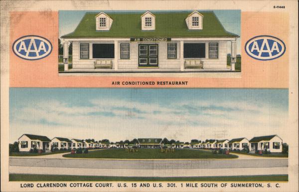 LORD CLARENDON COTTAGE COURT. U.S. 15 AND U. S. 301. 1 MILE SOUTH OF SUMMERTON, S. C.
