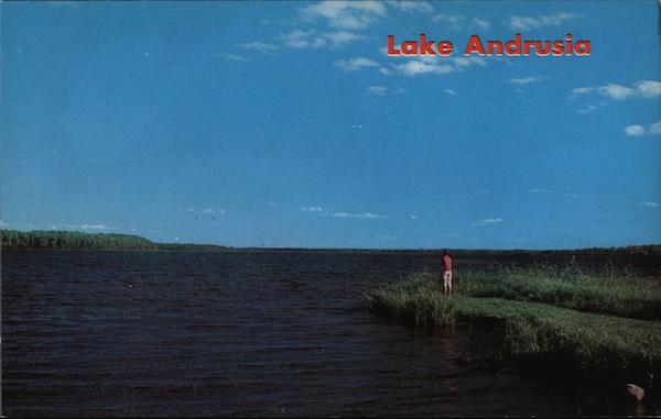 Front: Lake Andrusia Back: " LAKE ANDRUSIA" - 1510 Acres Surrounded by the forest abundant . The sparkling waters of Andrusia beckon the vacationer to its shores. Minnesota color scene by Schalow JADI *SACS. 26977.8