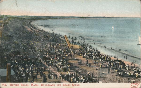 745. REVERE BEACH, MASS., BOULEVARD AND BEACH SCENE.