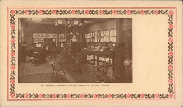 Front: THE YOUTH'S COMPANION LIBRARY, COMPAN!ON BUILDING, BOSTON. Back: THE SPACE ABOVE IS RESERVED FOR POSTMARK. POST=CARD. Y.C. Y.C.