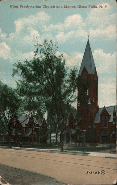 Front: First Presbyterian Church and Manse, Glens Falls, N. Y. 2/2794 JV Back: The Leighton & Valentine Co.,N.Y. City. THROUGHOUT TRADE MARK. TEL QUALITY, FAMOUS "HE WORLD