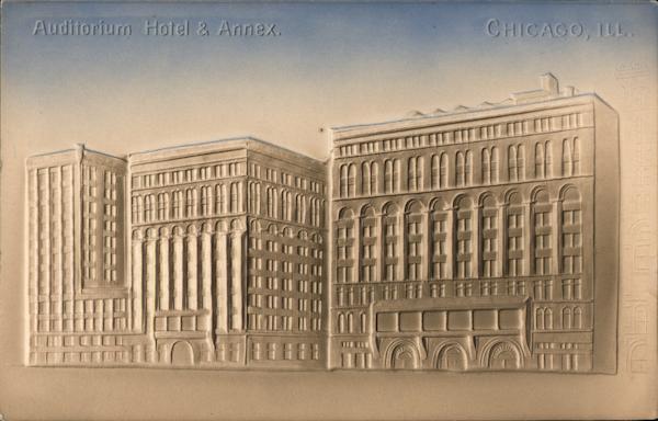 Front: Auditorium Hotel & Annex. CHICAGO, ILL. 100 Back: LOOADIR) XA319101 Place Stamo Canada Cuba Mexico, Hawaii Philippines Porto Rico