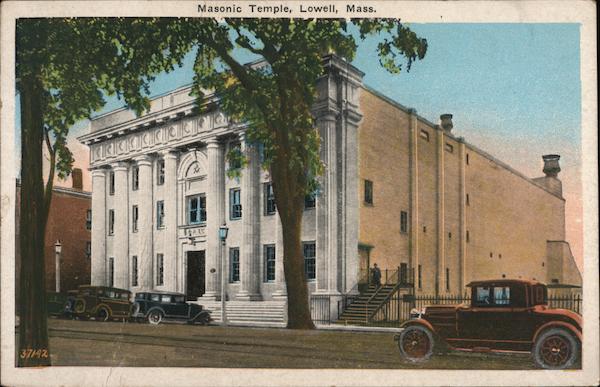 Front: Masonic Temple, Lowell, Mass. 37142 Back: NEN LIUT Place the Stamphere and Island Possessions Cuba, Canada and for foreign. Pub by The New England News Company.Boston, Mass.,