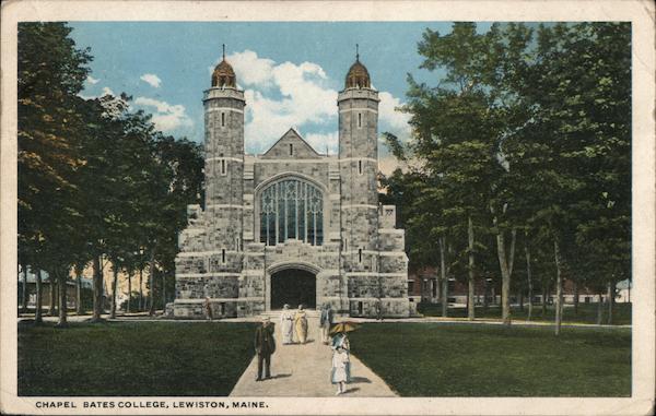 Front: CHAPEL BATES COLLEGE, LEWISTON, MAINE. Back: A68128 مک luch DONEST از 15 Pos anda مد ہے سے T, AMERICAN ره . . ( Beatine Mis. Comch. Mass. 3- 21