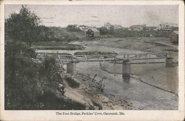 Front: The Foot Bridge, Perkins' Cove, Ogunquit, Me. Back: PAT OFF, EST. 1904 FRANK SWALLON DAUGS INC. 1910 EXETER N. H. C. INC) CORRESPONDENCE-742 I Lummit as