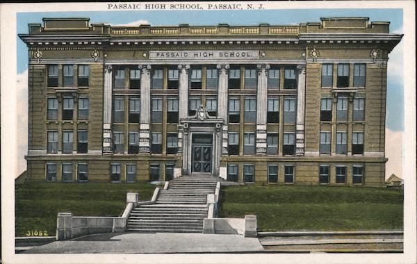 Front: PASSAIC HIGH SCHOOL, PASSAIC, N. J. PASSAIC HIGH SCHOOL. 31652 Back: Place the Stamphere and Island Possessions Cuba, Canada and > CoCMD > 3 M M
