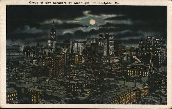 Group of Sky Scrapers by Moonlight, Philadelphia, Pa.