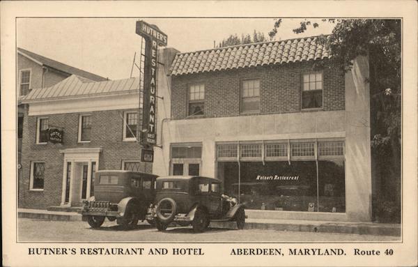 HUTNERS 000000. OTEL taers Restaxrant ABERDEEN, MARYLAND. Route 40 HUTNER'S RESTAURANT AND HOTEL REST URAN T