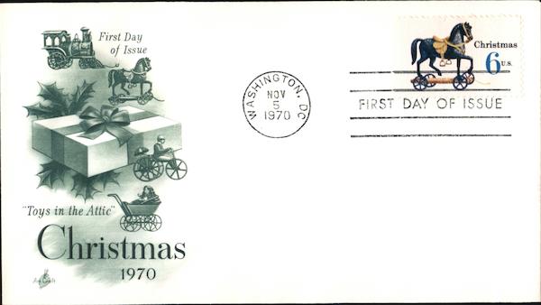 First Day Christmas of Issue NOV 3 1970 O FIRST DAY OF ISSUE "Toys in the Attic" Christmas 1970 Arf Craft
