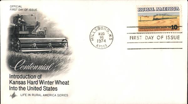 OFFICIAL FIRST DAY OF ISSUE RURAL AMERICA GBORD 10 KANSAS KAD WINTER WHAT 18741974US 16 1974 FIRST DAY OF ISSUE 67063 Contennial Introduction of Kansas Hard Winter Wheat Into the United States Art Caft LIFE IN RURAL AMERICA SERIES