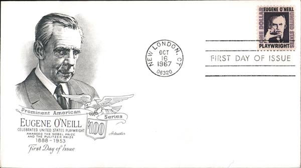 CEUGENE O'NEILL CONDOR PLAYWRIGHT OCT 16 Z 1967 06320 FIRST DAY OF ISSUE Prominent American EUGENE O'NEILL CELEBRATED UNITED STATES PLAYWRIGHT DED THE NOBEL PRIZE AND THE PULITZER PRIZE AW Artmasler 1888 - 1953 First Day of Issue CT ONE DOLLAR