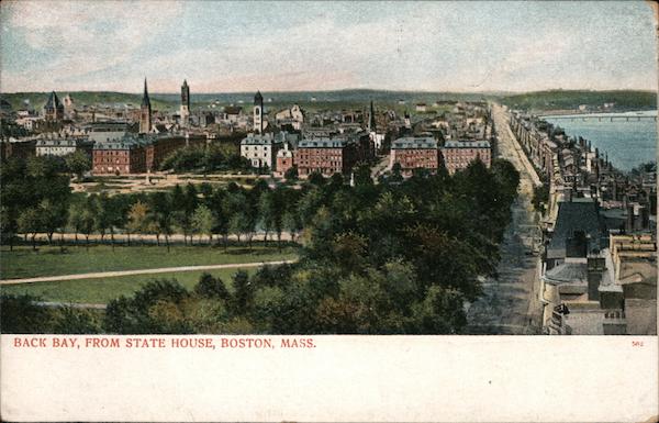 Front: BACK BAY, FROM STATE HOUSE, BOSTON, MASS. 2002 Back: Place Postage- Domestic: Foreign: Made in Germany. A.C.Bosselman & Co., New York.