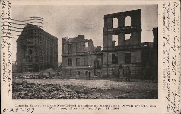 Lincoln School and the New Flood Building at Market and Powell Streets, San