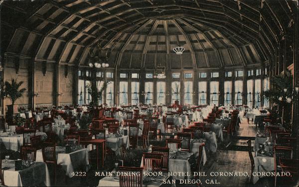 Front: MAIN DINING ROOM, HOTEL DEL CORONADO, CORONADO, SAN DIEGO, CAL. 4222 Back: and Island Possessions Cuba, Canada and MESSAGE MAY BE WRITTEN ON THIS SIDE PUBLISHED BY I. L. ENO, 958-5TH ST., SAN DIEGO, CAL. "T. PHOTOCHROM R-18333