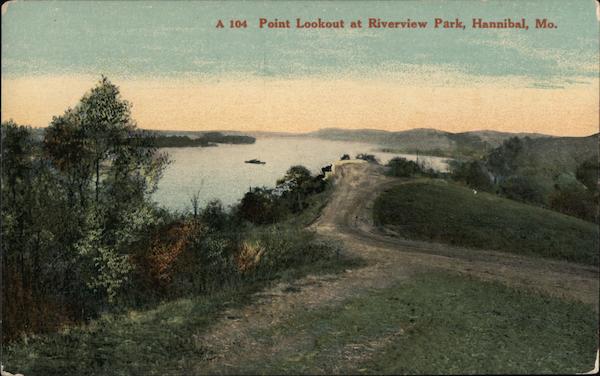 Front: A 104 Point Lookout at Riverview Park, Hannibal, Mo. Back: THIS SPACE MAY BE USED FOR WRITING 1 @ ST AR Published by J. P. O'Hern, Hannibal, Mo.