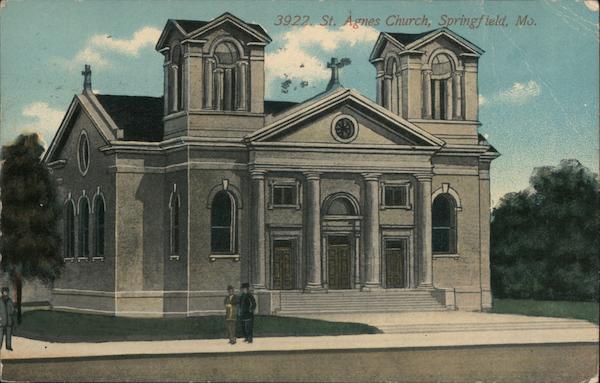 Front: 3922 St. Agnes Church, Springf ield, Mo. Back: 9-B-34 U.S.LJSTAGE fer You 10 PM 1911 beliete Calla u nuts Pub. by The Acmegraph Co., Chicago, Ill. Your battery is recely Saffiyaa this farms s-8-Box 103 ал Springfield Mo