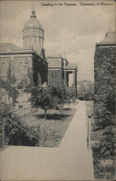 Front: Leading to the Campus. University of Missouri. H0.23. Back: 2.00 lc. 2c. THE ALBERTYPE CO. BROOKLYN, N. Y. MESSAGE ON THIS SIDE. FOR ADDRE88 ONLY.