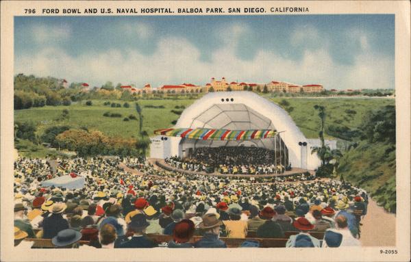 FORD BOWL AND U.S. NAVAL HOSPITAL. BALBOA PARK. SAN DIEGO. CALIFORNIA