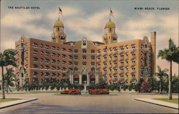 Front: THE NAUTILUS HOTEL MIAMI BEACH, FLORIDA Back: 2.50 15498 DADE COUNTY NEWS DEALERS SUPPLY CO. A "COLOUR PICTURE PUBLICATION, CAMBRIDGE, MASS., U. S. A.