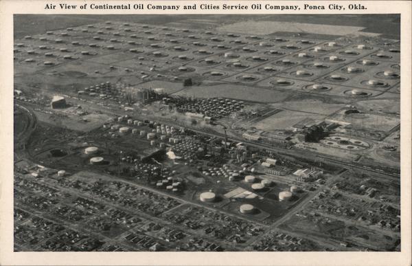 Front: Air View of Continental Oil Company and Cities Service Oil Company, Ponca City, Okla. FEFE Back: P-104 A 'Natural-Finish' Card Made By Graycraft Card Co., Danville, Va. 2.50 Photo by Morton Harvey