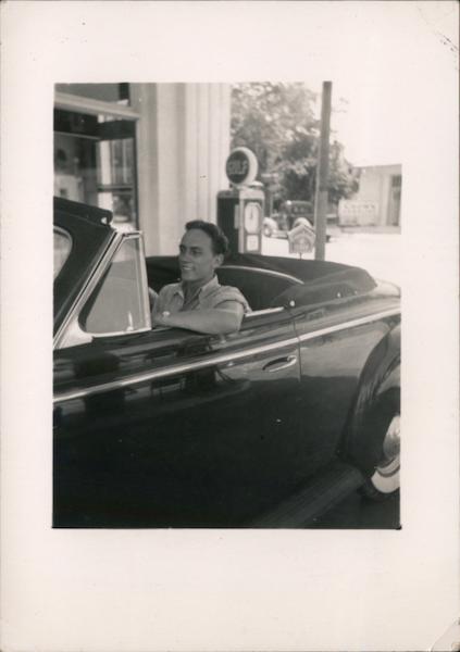 Man in Car Gulf Gasoline Pump in Background