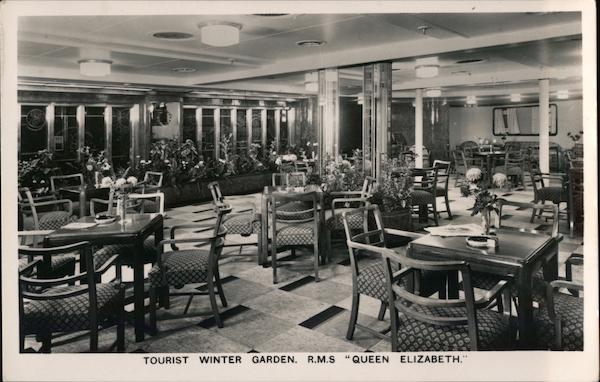 Front: 80 888 19 TOURIST WINTER GARDEN. R.M.S 66 "QUEEN ELIZABETH." 199段 Back: POST : CARD. A REAL PHOTOGRAPH COMMUNICATION BRITISH MANUFACTURE