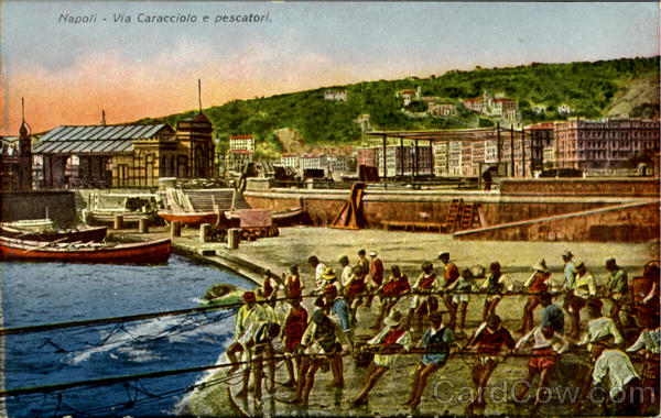Front: Napoli - Via Caracciolo e pescatori. Back: Ditta R. Zedda di V. Carcavallo - Napoli 16 Binigung in the nets Naples