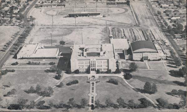 | Beautifully situated and landscaped, overlooking Ponca City, the campus covers more than 25 acres. Plant and grounds are valued at more than $2,000,000. The Howell Building, the Industrial Education Building, the Girls' Gymnasium, and the Fieldhouse, with adequate parking facilities, baseball diamond, and football stadium with a seating capacity of 6,000, will house a student body of 1,500. |