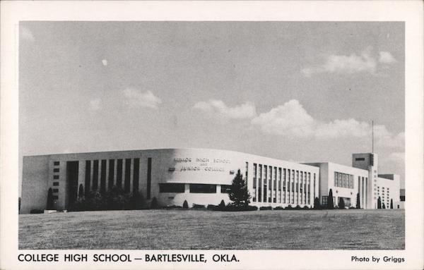 Front: 1- S IC COLLECE COLLEGE HIGH SCHOOL – BARTLESVILLE, OKLA. Photo by Griggs Back: LITHOGRAPHED PRINT-O-LITH, TULSA – PUB. BY GENE DAILY 800