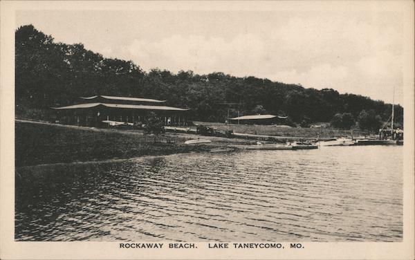 Front: ROCKAWAY BEACH. LAKE TANEYCOMO, MO. Back: Published by Branson Drug Co., P. S. Alexander, Prop.