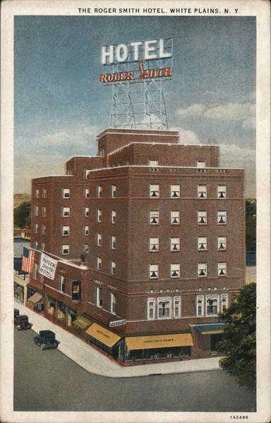 Front: THE ROGER SMITH HOTEL, WHITE PLAINS, N. Y. ROGERMITH ROGER SMITH F丽 F HAMILIUN &GROFF 1A2496 Back: THE RUBEN PUBLISHING CO., NEWBURGH, N. Y. >-wso GURES