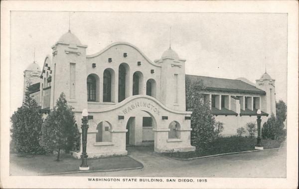 Front: CTON HINGYO WA WASHINGTON STATE BUILDING, SAN DIEGO, 1915 Back: SAN DIEGO 7- CALIFORNIA THE COMPLETION/ OF THE PAN ANAL THIS SPACE MAY BE USED FOR MESSAGE