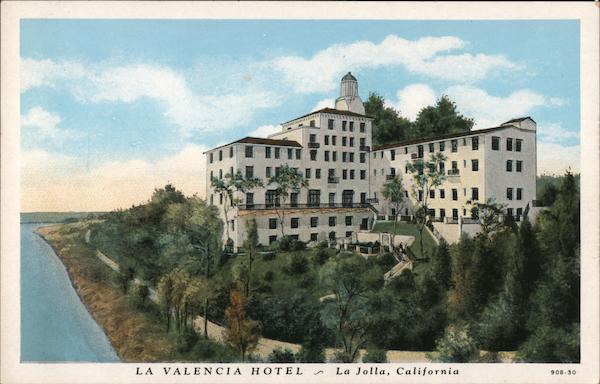 Front: %3D %3D 806 LA VAL ENCIA HOTEL La Jolla, California 908-30 Back: iso MADE BY CURT TEICH & Co., INC., CHICAGO, U.S.A.