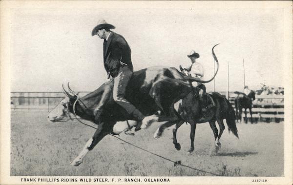 FRANK PHILLIPS RIDING WILD STEER, F. P. RANCH, OKLAHOMA 2387-29