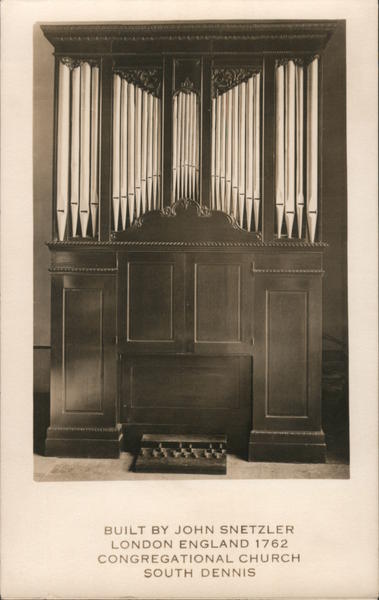 Front: DAE BUILT BY JOHN SNETZLER LONDON ENGLAND 1762 CONGREGATIONAL CHURCH SOUTH DENNIS Back: A G F A S STAMPS o**o