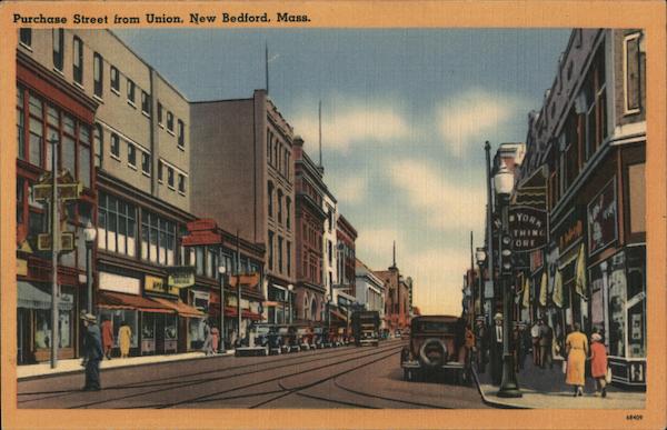 Front: Purchase Street from Union. New Bedford, Mass. YORK THING ORE OF 68409 Back: MADE IN U. S. A PUB. BY BERGER BROS., PROVIDENCE, R. I. R BROS. ЯВ PROVIDE R.J.
