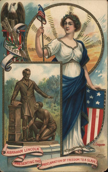 Front: BERT C.Chapman ABRAHAM LINCOLN PARNG ONLY COMYRIGHTED BY NEARTPOK.CO SPROCLAMATION OF FREEDOM TO A SLAVE PRESENTING THE Back: International Art Publ.co. MADC MARK NEW-YORK BERLIN Uncle George NO 51658.