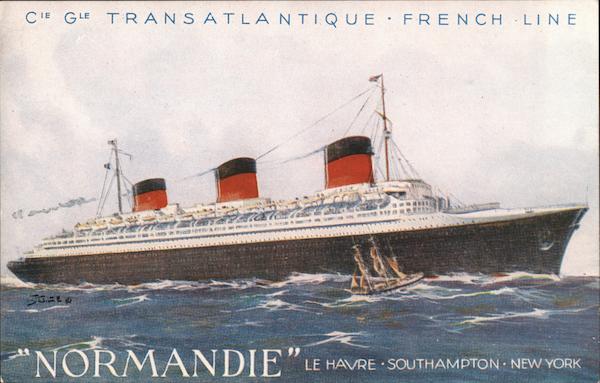 Front: CIE GLE FRENCH LINE TRANSATLA N TIQUE #集 GAL NORMANDIE" LE HAVRE · SOUTHAMPTON NEW YORK Back: CARTE "L'Atlantique", Paris POSTALE