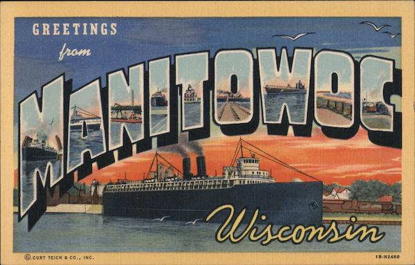 Front: GREETINGS EE0 Wisconsin CCURT TEICH & CO., INC. 1B-H2480 Back: MANITOWOC CIRCULATORS, MANITOWOC, WISCONSIN ی را cc