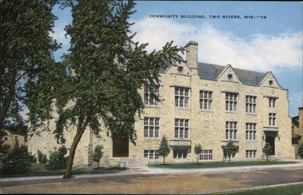 Front: COMMUNITY BUILDING, TWO RIVERS, WIS.-14 Back: Со 22031N -PUBLISHED BY TWO RIVERS NEWS AGENCY, TWO RIVERS, WIS.