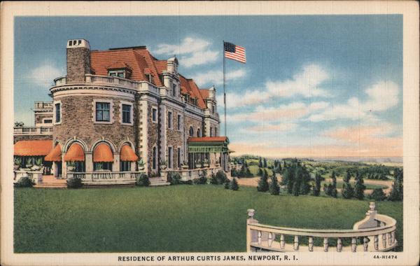 Front: RESIDENCE OF ARTHUR CURTIS JAMES, NEWPORT, R. I. 4 A-H1474 Back: "c. T. ART-COLORTONE, MADE ONLY BY CURT TEICH & Co., INC., CHICAGO, U.S.A.