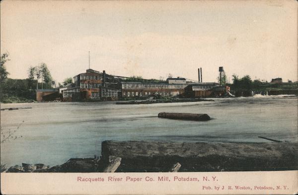 Front: Racquette River Paper Co. Mill, Potsdam, N. Y. Pub. by J. R. Weston, Potsdam, N. Y. Back: UNITED ART PUBLISHING CO., NEW YORK CITY (PRINTED IN GERMANY.) 1039