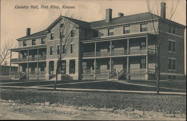 Front: Cavalry tHall, Fort Riley, Kansas. Back: One went for United States, and island Possession- Canada and Mex co For Foreign, 36A dhise Blanche black 200 I weight Kansas 9581
