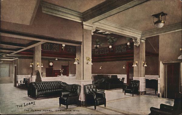 Front: SPNE THE LOBBY THE PLAIINS HOTEL, CHEYENNE, WYo. Back: ONE CORT This Space May Be Used for a Written Message.