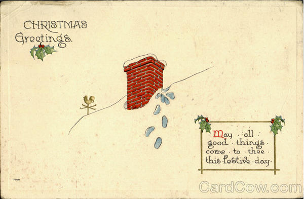 Front: CHRISTMAS Greetings 7008 May all good things. come to thee. this festive day. Back: 23 6 PM 1913 VT. Mrs. S. M. Bryant Brandon, Vt CAGA Clara Bontell. R. F. D.